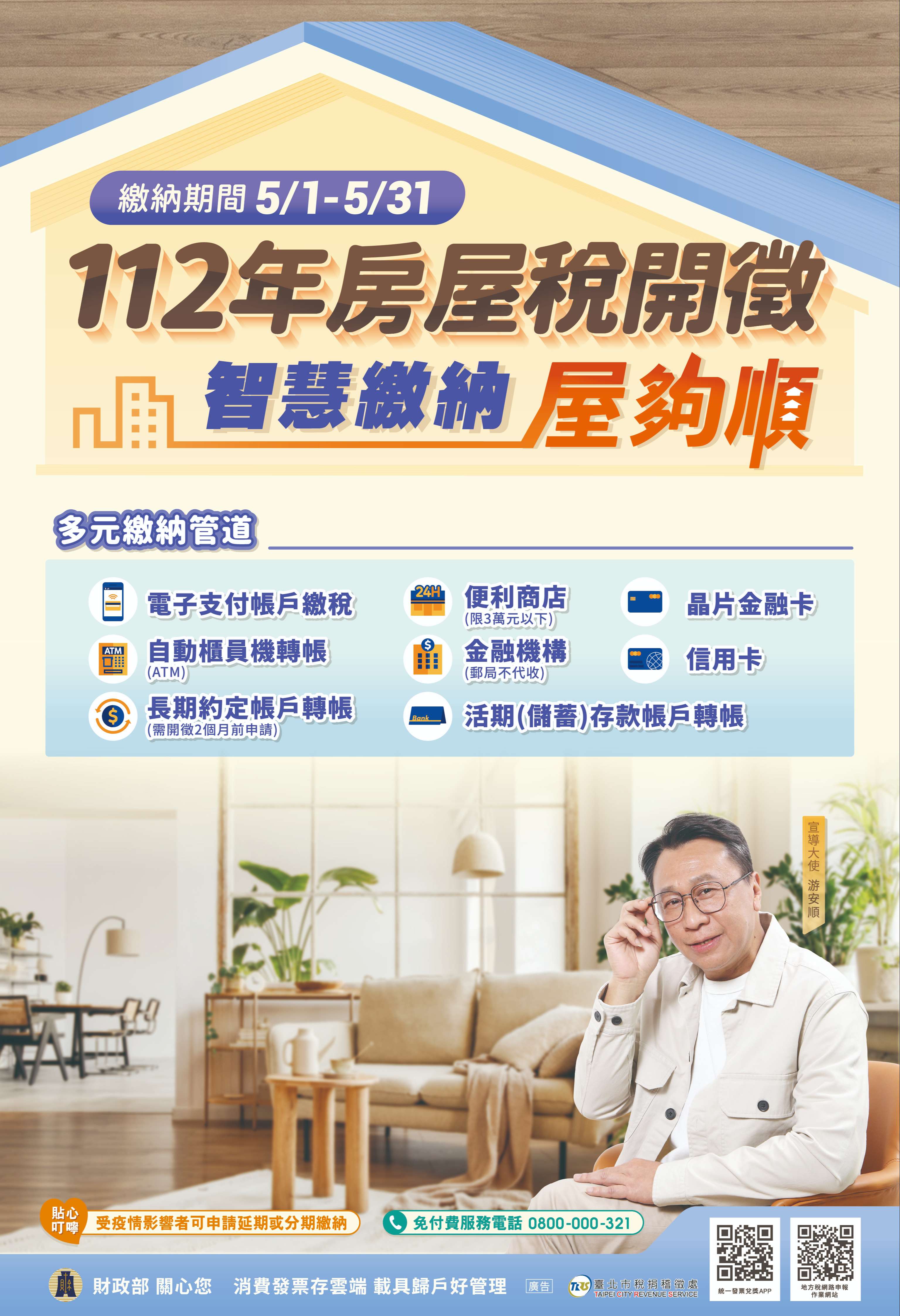 112年房屋稅開徵囉!繳納期限至5月31日止,歡迎至地方稅網路申報系統辦理線上查繳稅或使用行動支付APP繳稅。臺北市稅捐稽徵處大安分處關心您!