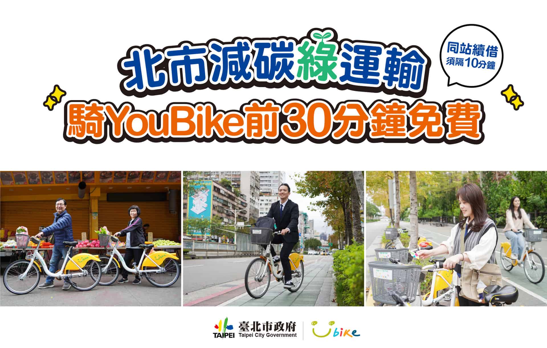 三、本市減碳綠運輸騎YouBike前30分鐘免費宣傳圖。