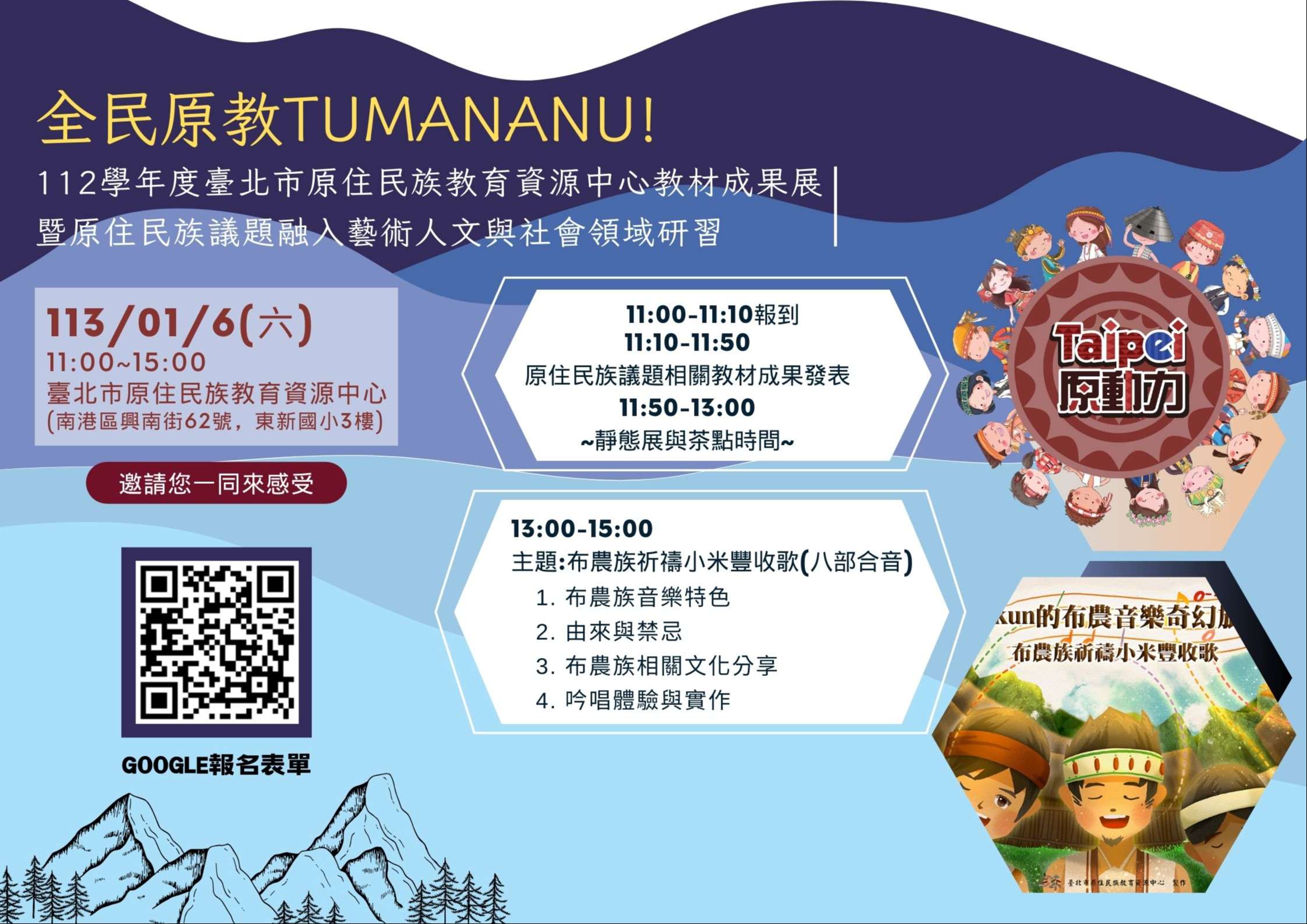 一、依據教育部國民及學前教育署補助112年度臺北市原住民族