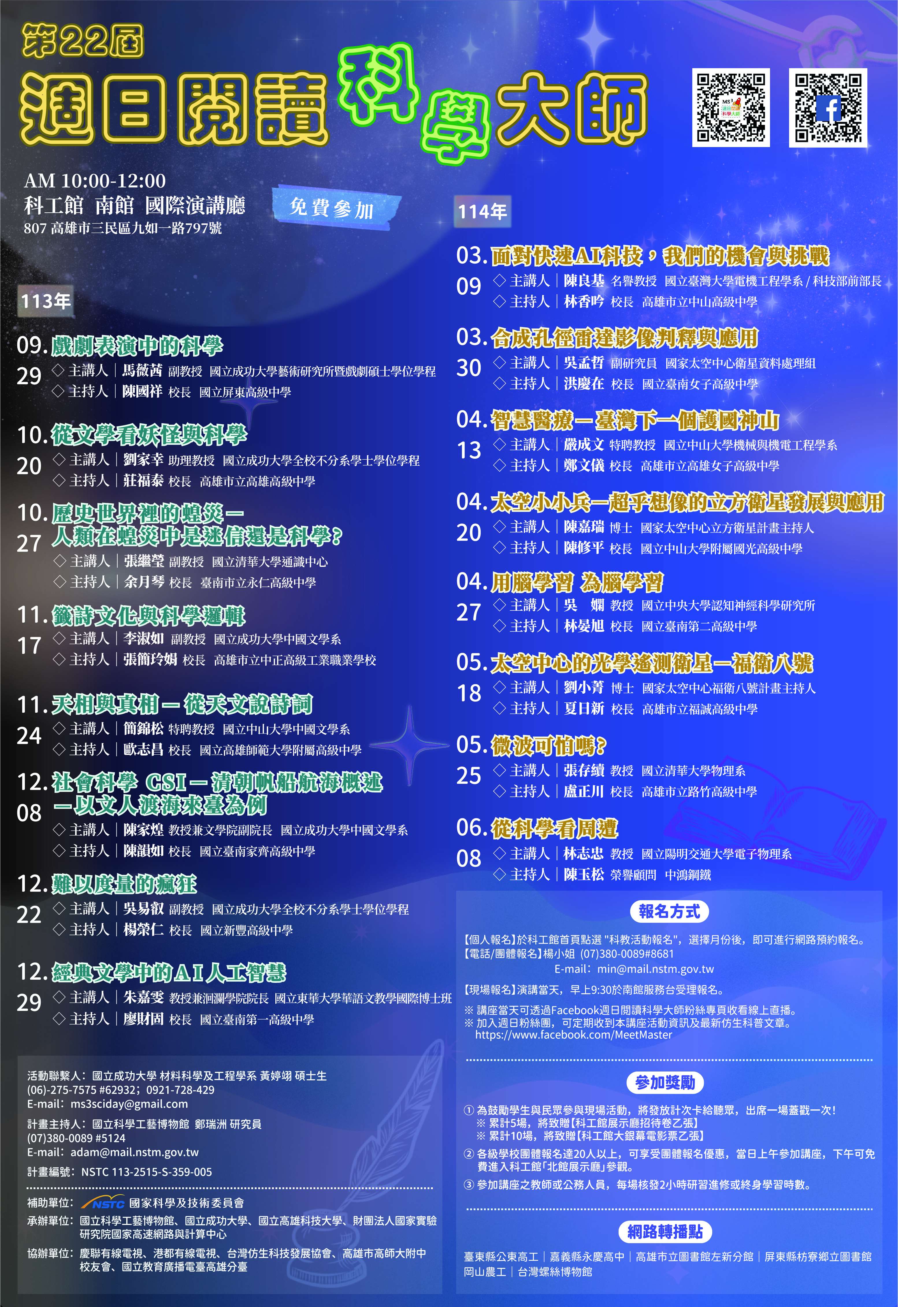 (四)講座提供現場直播,可透過週日閱讀科學大師官網:
