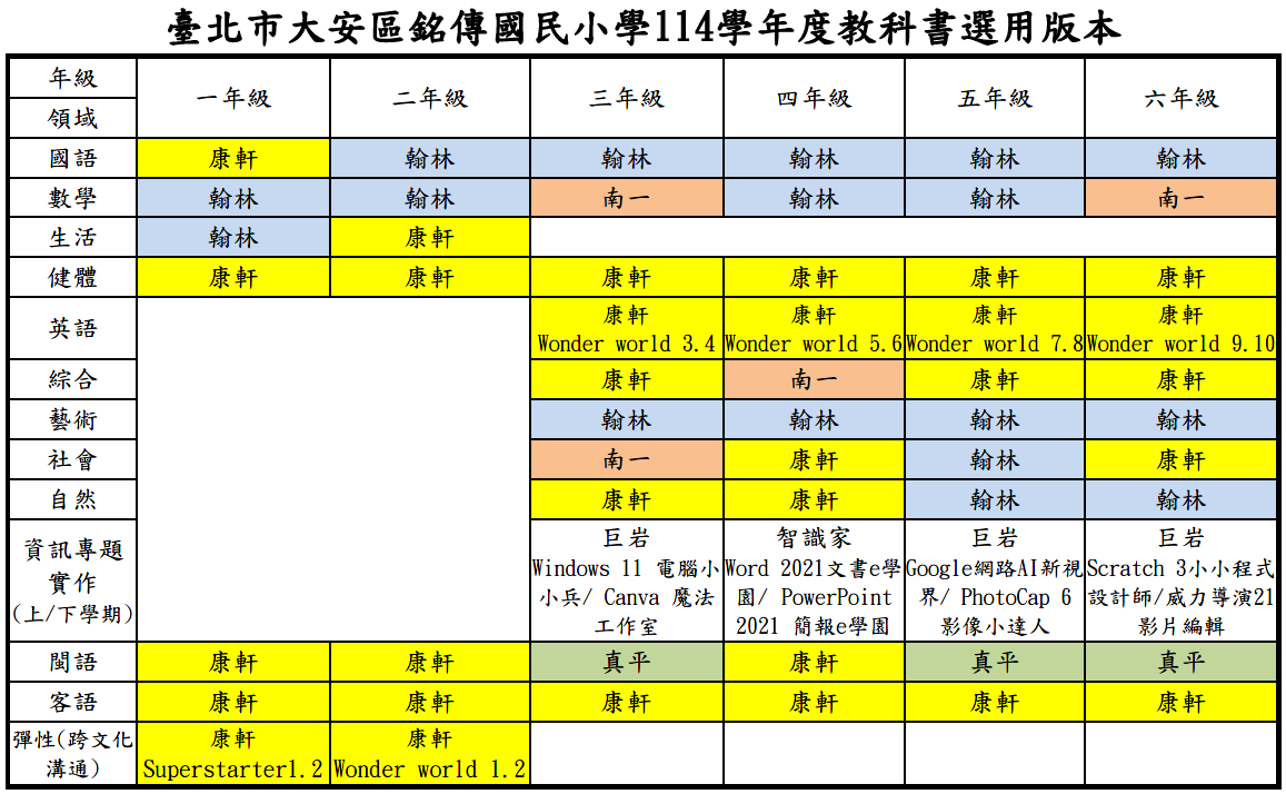 114學年度教科書選用版本 於114/5/21 課程發展委員會決議通過。