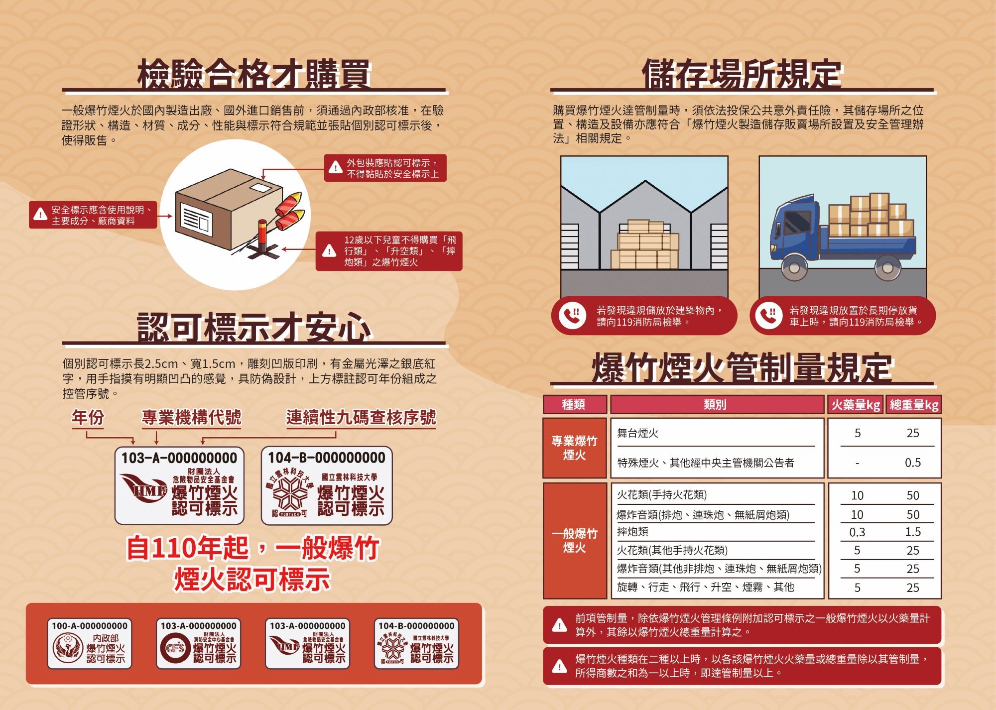 五、檢送本市消防局爆竹煙火宣導摺頁1份(摺頁下載處)